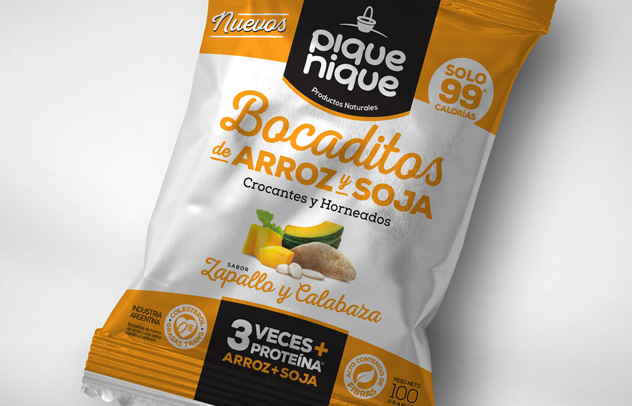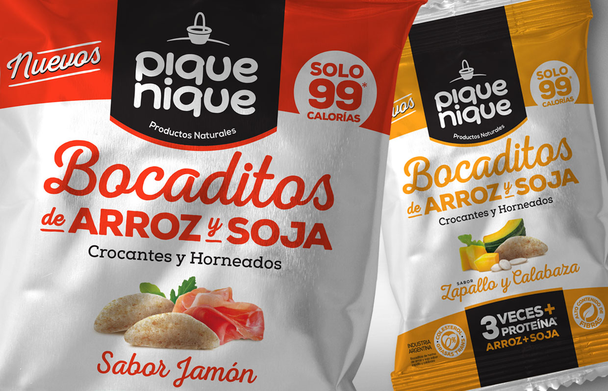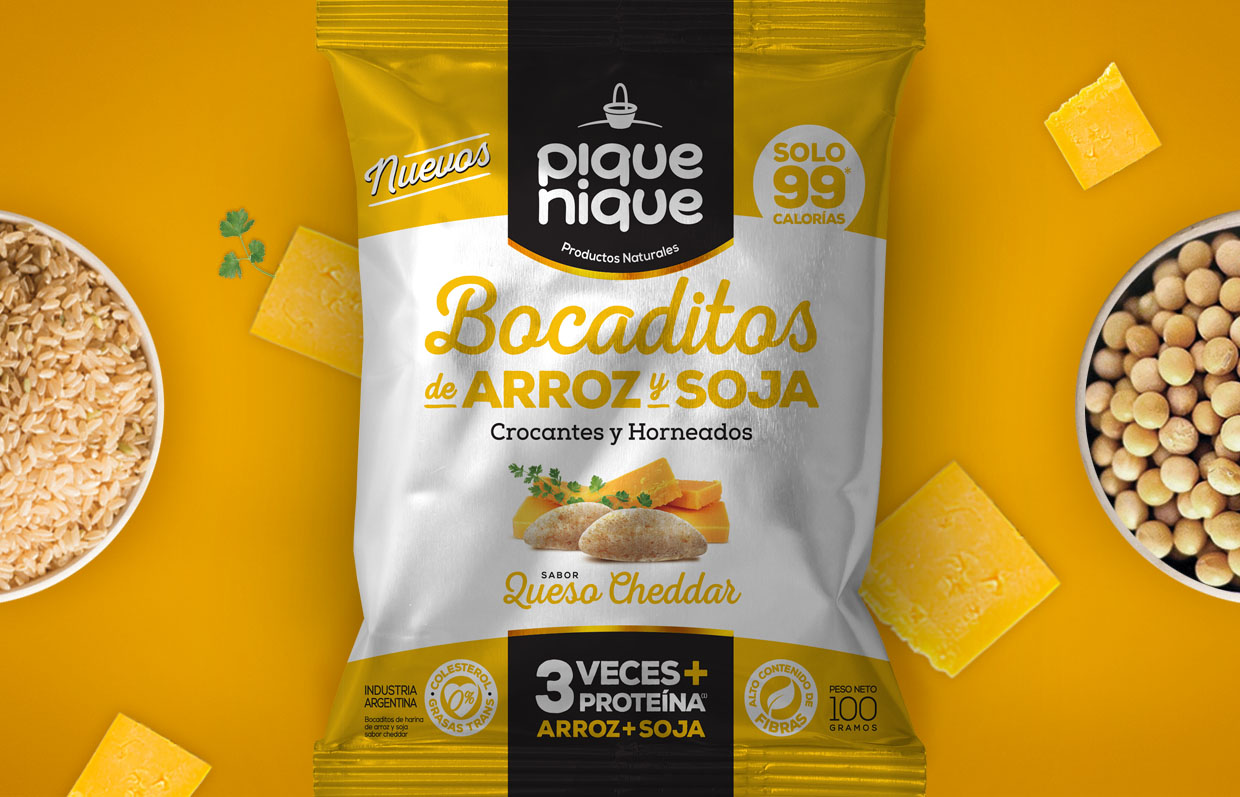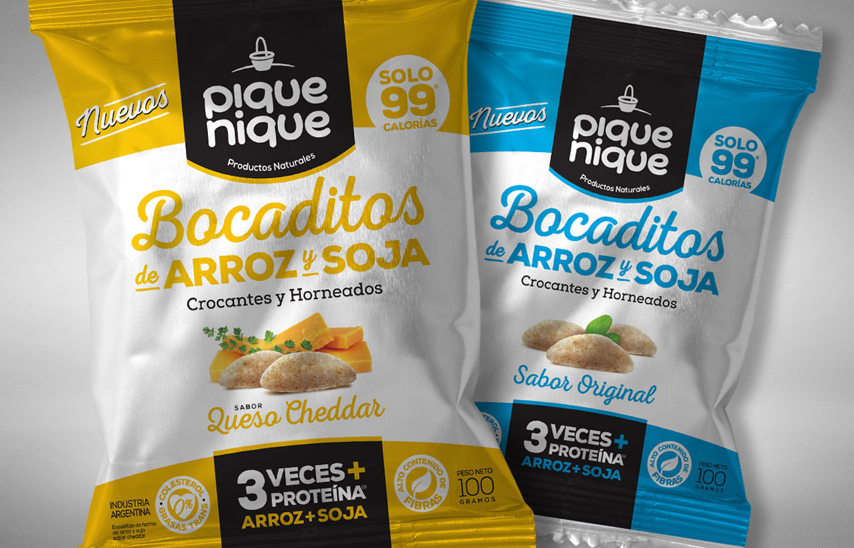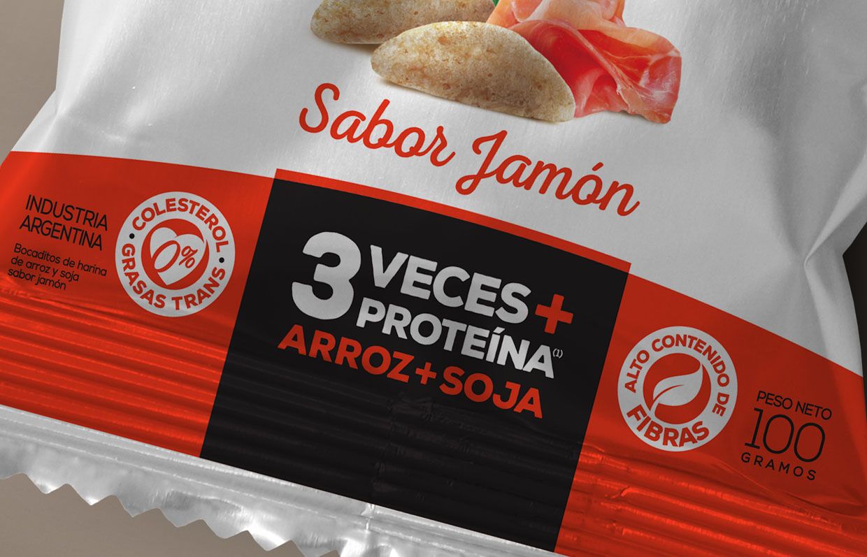 Molino Panamericano S.A., ha lanzando al mercado una línea de snacks súper saludables e innovadores que contienen 3 veces más proteínas que cualquier snack existente en el mercado, este producto se logra a través de la unión del arroz y la proteína de la soja. Además, poseen un alto contenido de fibras y son bajos en sodio. Son elaborados con materias primas de alta calidad y con cuidadosos estándares de producción. Son una alternativa gourmet y saludable, con esta premisa diseñamos su marca y su línea de packs. Creemos que llegaron para quedarse!